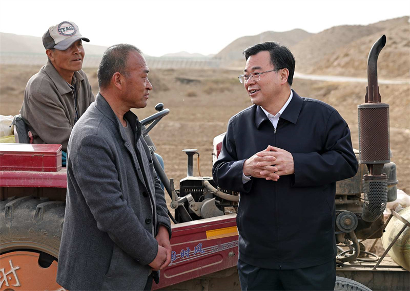 在白銀區武川鄉紅峴村、靖遠縣東灣現代農業產業園,胡昌升走進田間地頭、蔬菜大棚,與正在勞作的群眾親切交流,詳細詢問春耕生產、鄉村振興等情況。他強調,要做好農資農機服務保障,加強農業技術指導,全力抓好春耕生產。要善于挖掘和利用本地優勢資源發展特色富民產業,培育壯大新型農業經營主體,提升組織化集約化水平,促進農業增產增效、農民增收致富。要落實五級書記抓鄉村振興要求,發揮好基層黨組織和黨員干部作用,更好組織群眾、宣傳群眾、凝聚群眾、服務群眾,緊緊圍繞促進農民增收這個中心任務,把黨組織建在產業鏈上,把黨員聚在產業鏈上,讓群眾富在產業鏈上,把黨的組織優勢轉化為加快鄉村發展的實際成效。