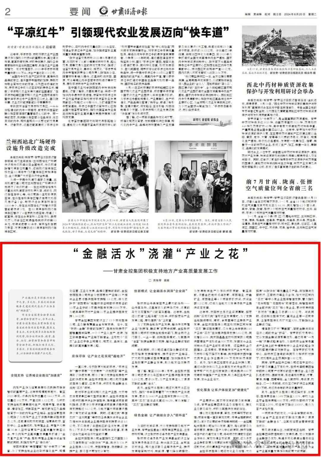 【媒體關注】“金融活水”澆灌“產業之花”——甘肅金控集團積極支持地方產業高質量發展工作