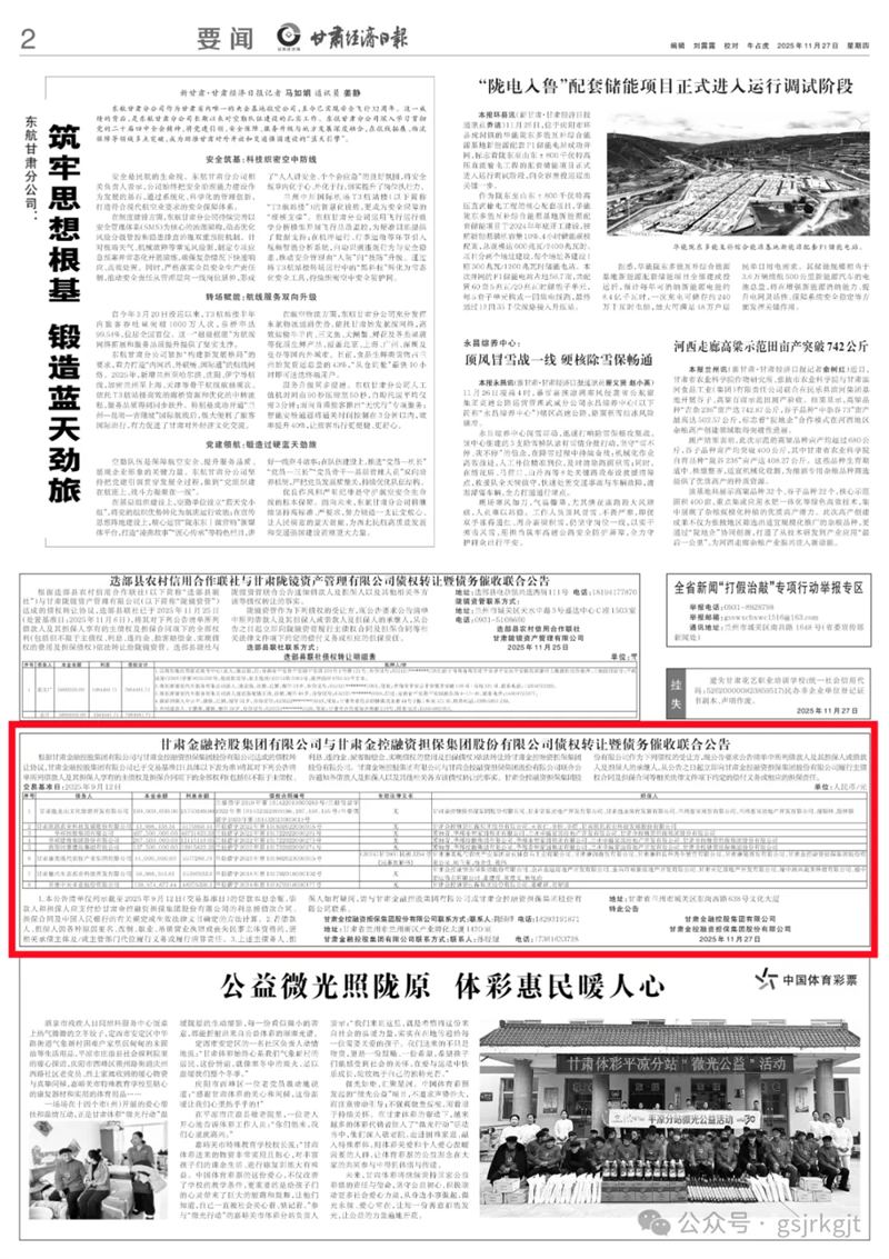 甘肅金融控股集團(tuán)有限公司與甘肅金控融資擔(dān)保集團(tuán)股份有限公司債權(quán)轉(zhuǎn)讓暨債務(wù)催收聯(lián)合公告