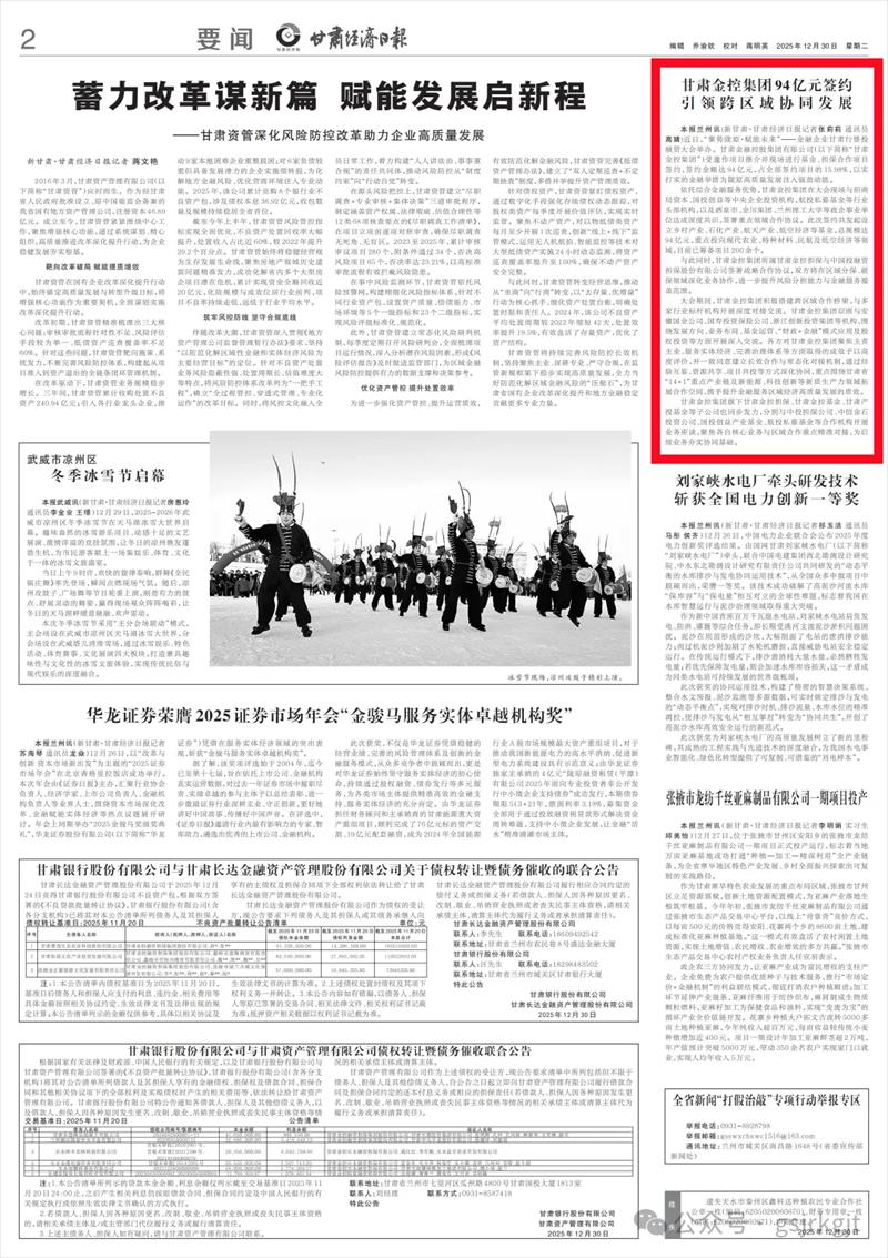 媒體關注 | 甘肅金控集團94億元簽約引領跨區域協同發展