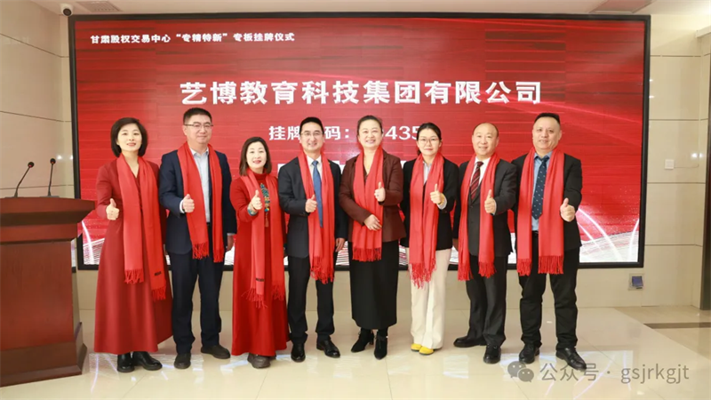 一元復(fù)始,歲華新至。2026年開篇之月,藝博教育科技集團(tuán)有限公司(以下簡稱“藝博集團(tuán)”)在甘肅省“專精特新”專板掛牌儀式圓滿舉行。藝博集團(tuán)董事長盧永鋒及甘肅股權(quán)交易中心主要負(fù)責(zé)任人出席儀式并致辭,藝博集團(tuán)總經(jīng)理魏明雪及核心骨干共40余人參加此次活動(dòng)。