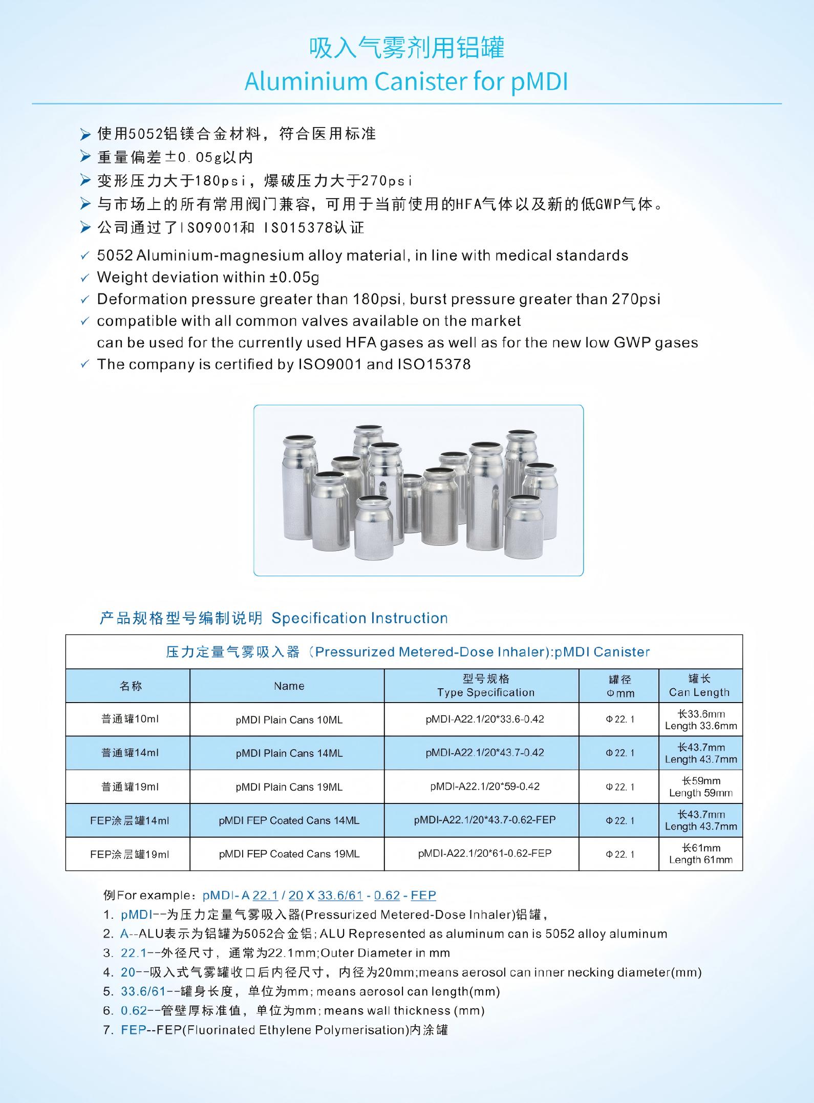 吸入式氣霧劑用鋁罐 Aluminum pMDI canisters